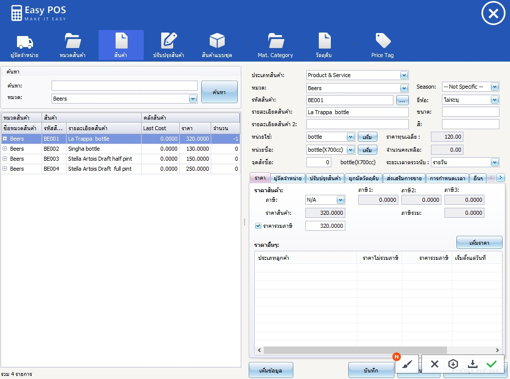 - สามารถกำหนดราคาขาย และราคาทุนของสินค้าและบริการ