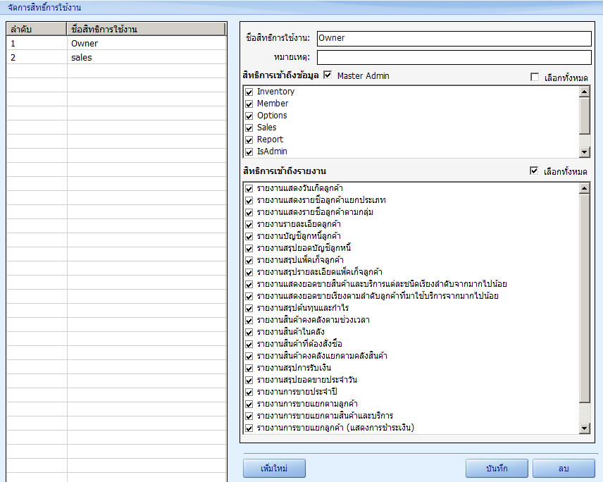 - สามารถกำหนดราคาขายของสินค้าและบริการโดยจำแนกตามประเภทสมาชิก (ลูกค้า)