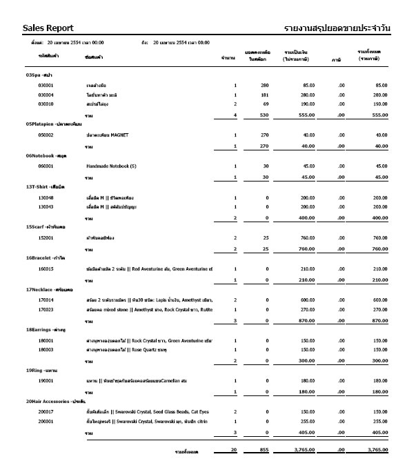 | รายงานสรุปยอดขายประจำวัน |